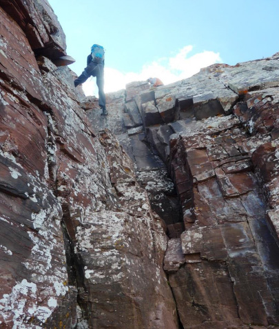 Andy watches me – I’m sure he was checking out if I’ve learned anything about hand and footholds as we head up the ledges and cliff bands. He’s got a smile so I must be doing good.