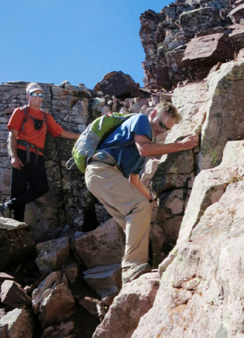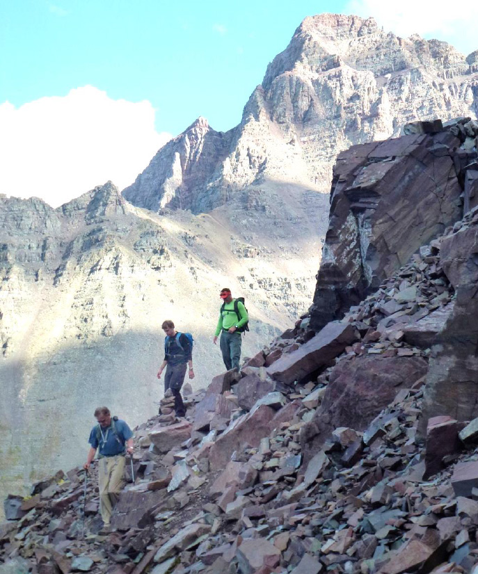 Dean and Rick S. rounding the “corner” of N. Maroon’s Northeast ridge.