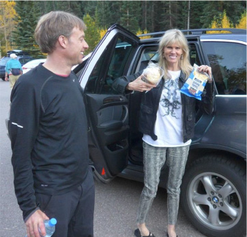 Rick’s wife Tricia had been watching our Spot Tracking on and off all day and timed her arrival at the Bells parking lot with cookies, sandwiches, water and a big congratulatory hug.