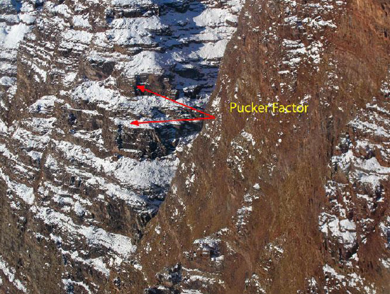 This second image from Aspen Mountain Rescue calls out two place of “pucker factor” but I can tell you there are a few others further up.