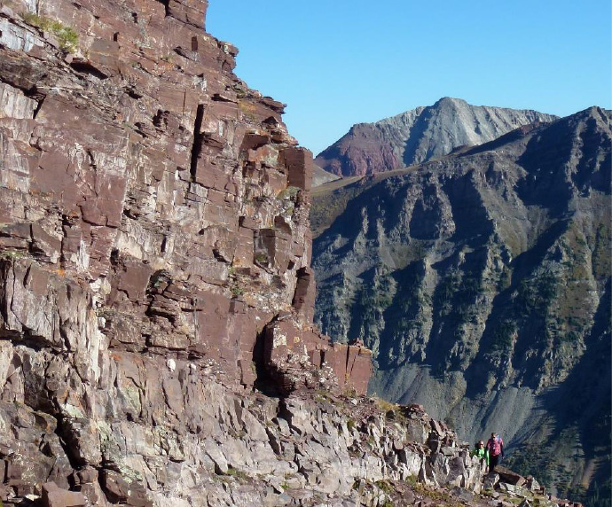 Exposure is present for hours of the climb on this mountain, so if that makes you nervous, skip this mountain. The old adage,“don’t look down” in my view is not good advice. If you can’t be OK with steep drop-offs all around you, whether you’re looking down or not, I would suggest avoiding the 14ers that have significant exposure.