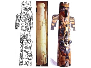 The famous carver, Duane Pasco studied the original carving styles of the Pacific Northwest from pre-1900 and re-discovered a nearly lost art. He created this pole in the authentic style and now teaches authentic carving to the native carvers in the Northwest. Includes mythical stories of Thunderbird, Frog, Dolphin and more.