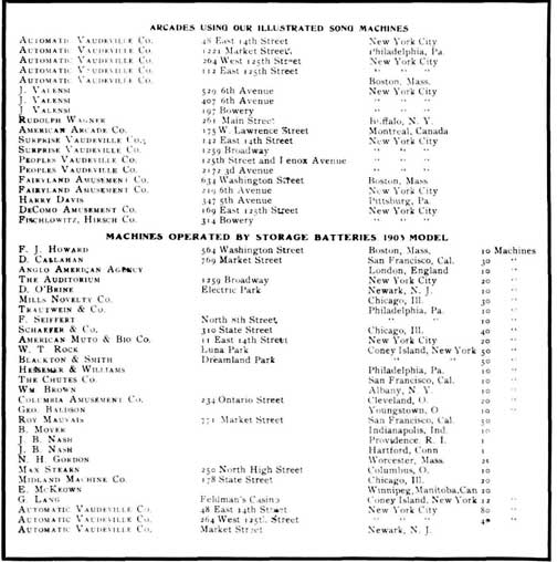 Figure 8. 1906 Rosenfield catalog listing of locations for the Illustrated Song Machine