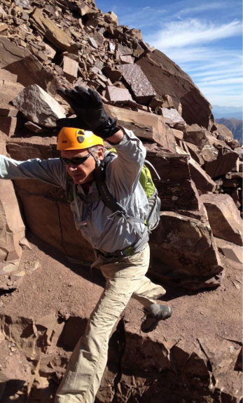 Rick coming up final 50’ to summit, where for the first time it actually got easier. You can tell from the picture how loose a lot of that rock is.