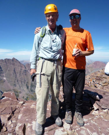 Andy had three bottles of Newcastle beer in his pack – and they tasted gooood! That’s Maroon Bells in the background.