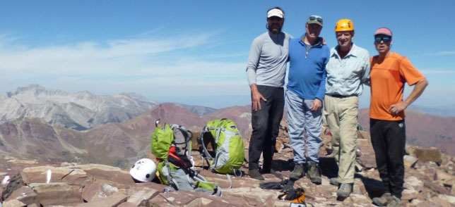 Left to right: Andrew; Jeff, Rick and Andy. Capitol Peak is in the background on the far left.