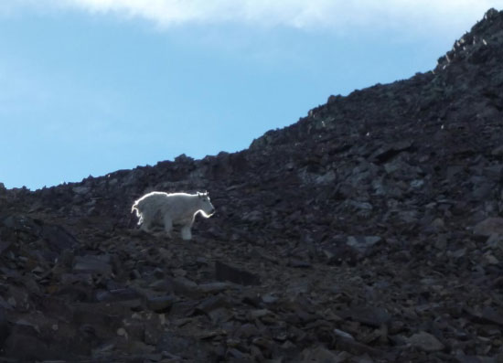 As I looked up the gully, I saw movement – and then the first of several mountain goat encounters – this one beautifully backlit. They’re not aggressive, and they are incredible mountain climbers as you’ll see.