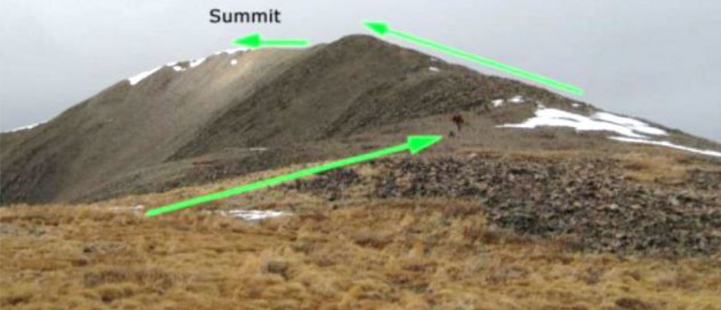 I think that is the prevailing opinion because the so-called “standard route” to climb this mountain is by its northeast ridge. This entails overnighting in Gunnison and then making a two-hour, 45-mile dirt-road ride in the dark of the early morning just to get to trailhead.