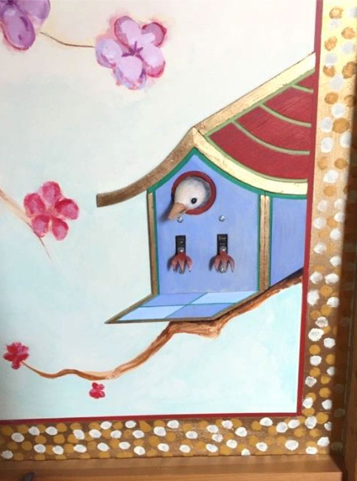 The artistry of the Cajun cabin brings a smile of appreciation – even the light switches were carved bird feet protruding from a bird house!