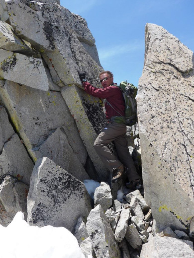 Clif was not to be turned back this close to summit. He started climbing down from the ridge top, apparently going for option #2.