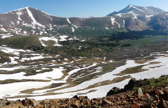 Once attaining the ridge, looking back. Taylor Mountain, 13,657’ in the background on the right. Lots of snow still around. That’s Mt. Princeton peaking over the middle.