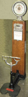 For testing the strength of a person in delivering a blow with the fist; to provide a strong, simple, cheap and compact device indicating the force of the blow; also that the shock of the blow will not be transmitted to the indicating means … and to provide means for controlling the operating by a coin.