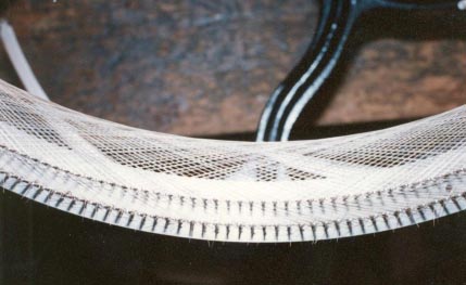 Reblitz: I used a bow re-hairing jig that a fine local machinist made for me. It counts pins from end to end of each hair, and ensures that each hair is at precisely the correct height on its pins. It takes me between five and six days to re-hair a bow.