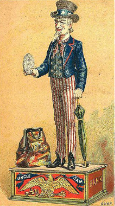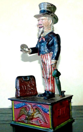 Fig. 8: Original Uncle Sam Bank, with original paint. 11 1/2″ tall. Rick Crandall collection.