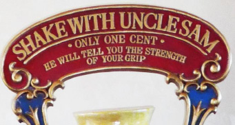 “The Most Unique of Strength Tests. Shake hands with ‘Uncle Sam.’” Everyone wants to do it, hence this new and novel machine pulls the crowds and brings in the money.”