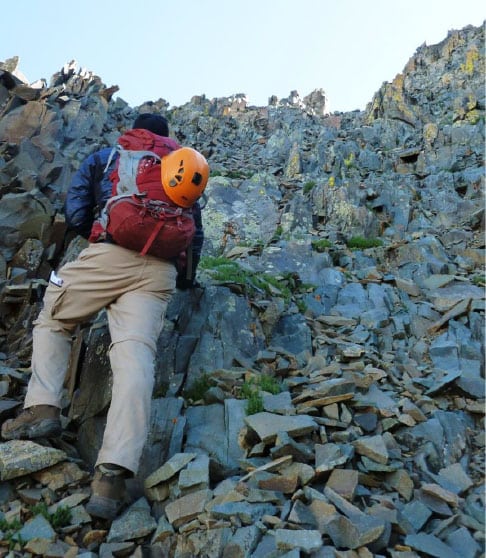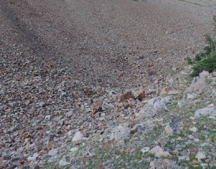 Next we headed up to a higher, smaller saddle on Gladstone ridge at 13,400’ through larger loose rock.