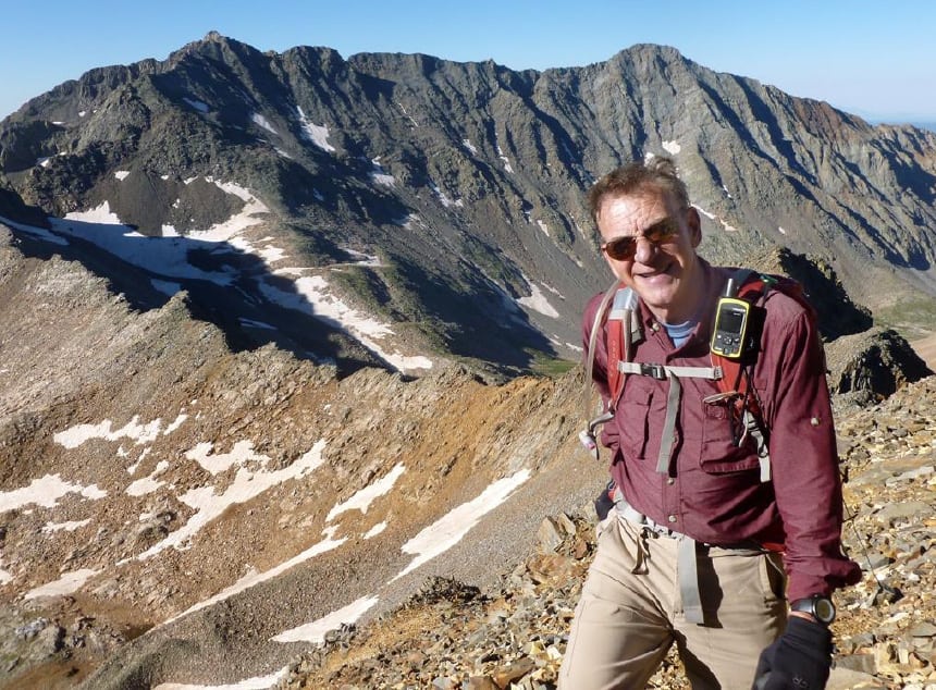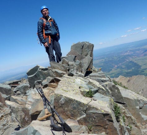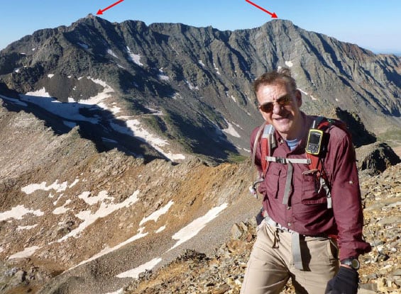 Wilson Peak is even more easily recognized and familiar for another reason, it figures prominently on the Coors beer labels and products! Adolf Coors choose this mountain to represent his beer in 1873 Rick Peckham and I tried this mountain 2 weeks ago, but turned around just 600’ from summit (actually the most challenging part) due to severe altitude sickness. Rick P. has been coming down from his Alaska home for several weeks each summer to partner with me in the joy of climbing and summiting Colorado’s 14ers. This time he hadn’t yet quite acclimatized to the high altitude. That story, which includes a gold find near the Silver Pick Mine and shows the approach from the Rock of Ages trailhead, can be found at: www.rickcrandall.net/wp-content/uploads/pdf/Wilson Peak climb.pdf