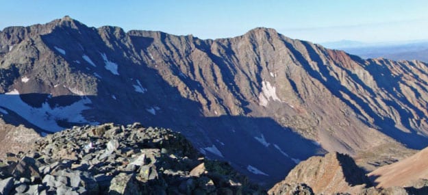 When we got to that upper saddle, there was a great sight behind us – the two tougher 14ers