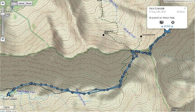 This was our whole route with the DeLorme InReach satellite message I sent from the top.