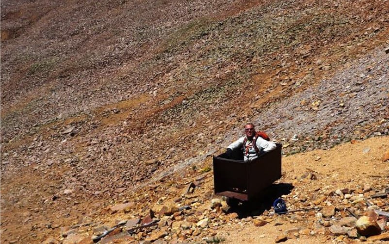 We ran into some very old, discarded mining equipment – of course Rick P. couldn’t get off the mountain without clowning around. This mining cart is heavy – here we’re about 12,800’ how did they get it up here?