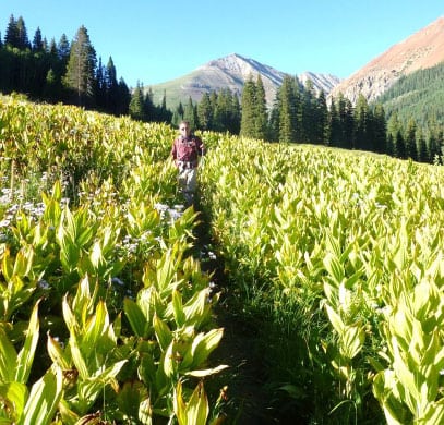 Soon we were in one meadow after another of a lily kind of plant – miles of it with a narrow path leading through and up.