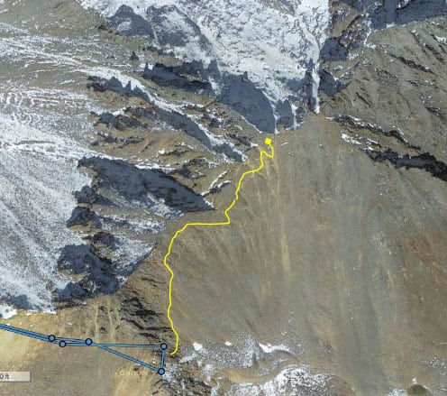 The yellow line shows what we had left to do – and there’s where the climbing starts.
