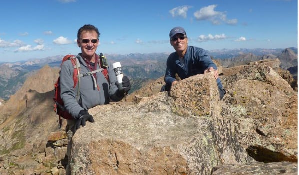 Actually Rick Peckham deserves credit for being with me on all those times – I might apply for him to become Mayor of Chicago Basin and its large goat population. Recall that Rick P. is a friend from Alaska who has visited at our home for a month each summer – he is retired military para-jumper search and rescue pro and a paramedic. He’s also a climber of some skill.