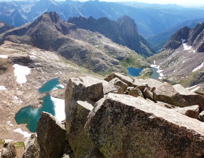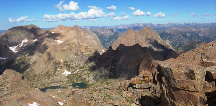 Here from Windom’s summit we’re looking over at Sunlight, another 14er we did before. That too is quite a mountain.