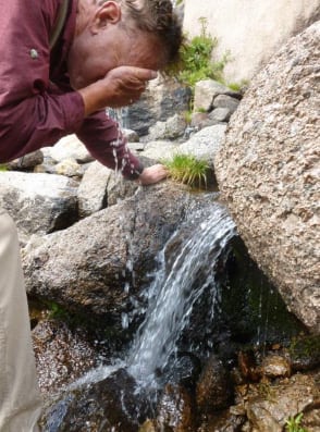 I’d worked really hard on this climb – 11 hours from camp to summit back to camp – and that’s after a 4 hour forced march up 3000’ and 6 miles from the train the afternoon before. I couldn’t resist a freshener.