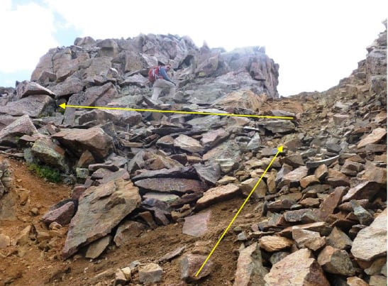 This is where it gets really rocky and deserving of the Class 2 designation (at this point, the rating goes up later). You nearly summit this but don’t have to go right to the top, rather circumvent the summit on the left.